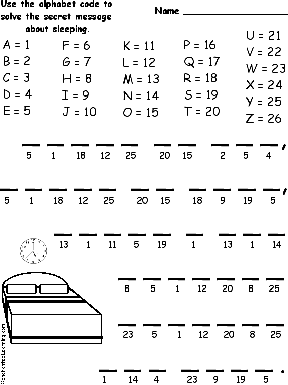 Use the alphabet code to find the sleeping adage in this printable worksheet.