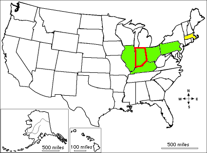 Johnny Appleseed Geography Quiz - Labeled Map Take a US geography quiz based on Johnny Appleseed's life using a map labeled with each state's abbreviation. Or go to the answers. |