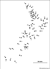 New Zealand: Dot to Dot Mystery Map Connect the dots to draw the borders of a mystery country. Then use a globe or atlas to figure out which country you have drawn. You might want to give students clues, such as the region the country is in (Oceania), that it is in the Southern Hemisphere, or that its name starts with "N." Answer: New Zealand. |