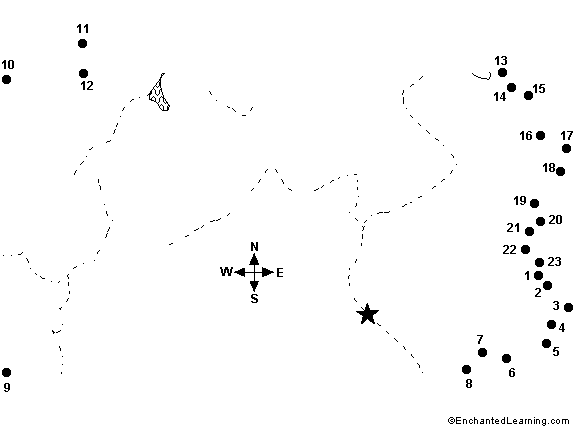 EnchantedLearning.com Dot to Dot Mystery Map Connect the dots to draw the borders of a mystery US state. Then use a globe or atlas to figure out which US state you have drawn. |