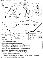 | Ethiopia - Follow the Instructions | More on Africa Geography Page Follow the Instructions Printouts |