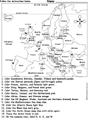 | Europe - Follow the Instructions | More on Europe Geography Page Follow the Instructions Printouts |