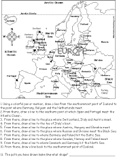 | Go to the Answers | Europe - Follow the Instructions #2 | Europe Geography Page Follow the Instructions Printouts |