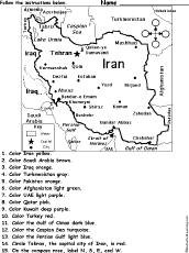 | Iran - Follow the Instructions | Middle East Geography Page Follow the Instructions Printouts |