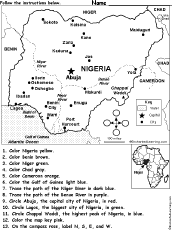 | Nigeria - Follow the Instructions | Go to the Answers More on Nigeria Geography Page Follow the Instructions Printouts |