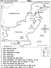 | Pakistan - Follow the Instructions | Go to the Answers More on Pakistan Geography Page Follow the Instructions Printouts |