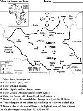 | South Sudan - Follow the Instructions | More on Africa Geography Page Follow the Instructions Printouts |