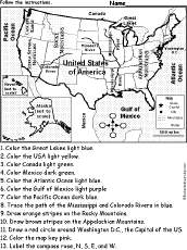 | United States of America - Follow the Instructions | United States of America Geography Page Follow the Instructions Printouts |
