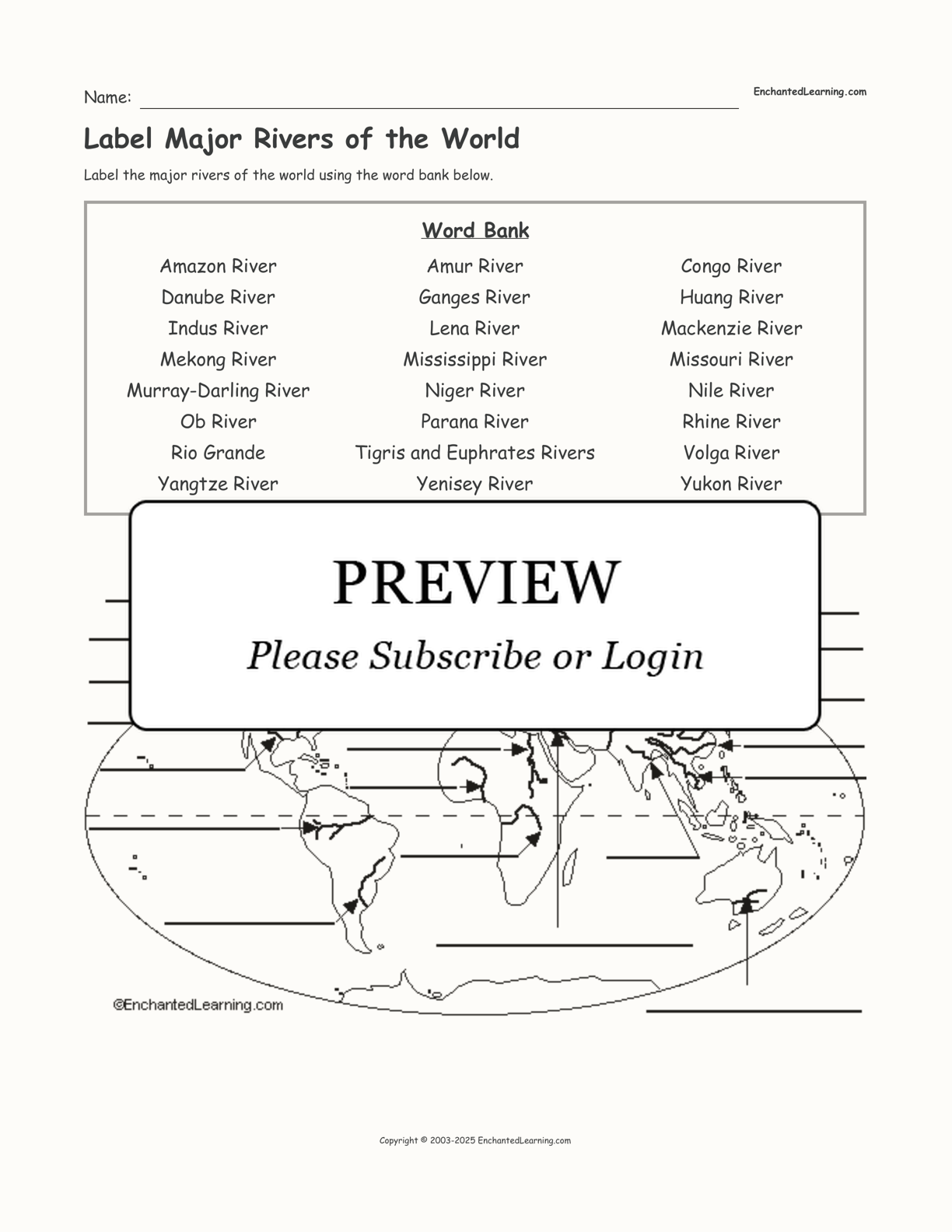 Label the major rivers of the world in this printable worksheet.