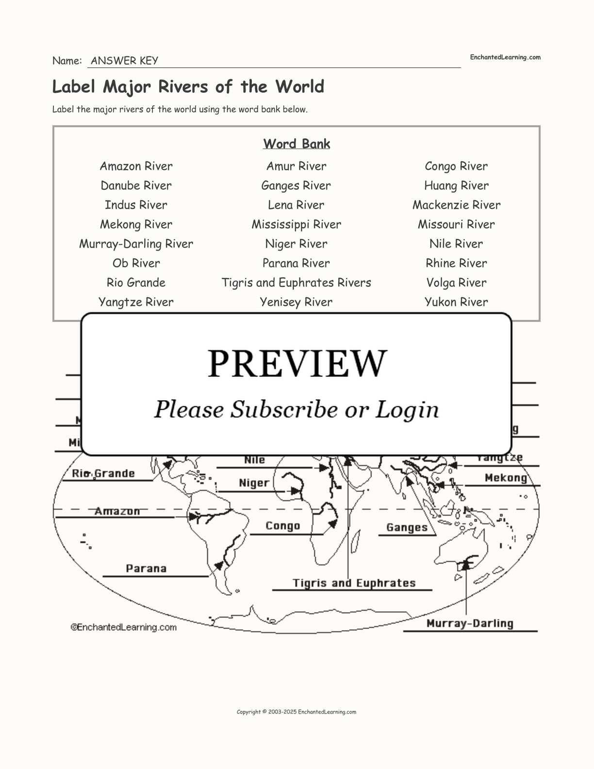 Label Major Rivers of the World
