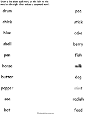 In this series of printable worksheets, the students draws a line between components of compound words to make complete words.