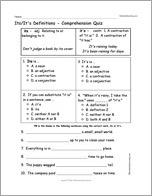 Its/It’s Definitions - Comprehension quiz: A printout about the commonly misused words, “its” and “it’s“.