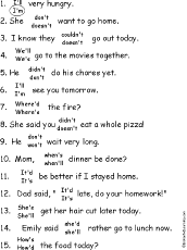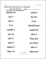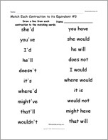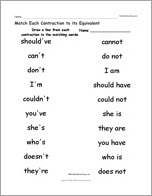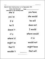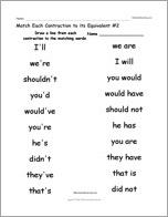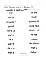 Match each contraction to its equivalent word(s) in this printable worksheet.