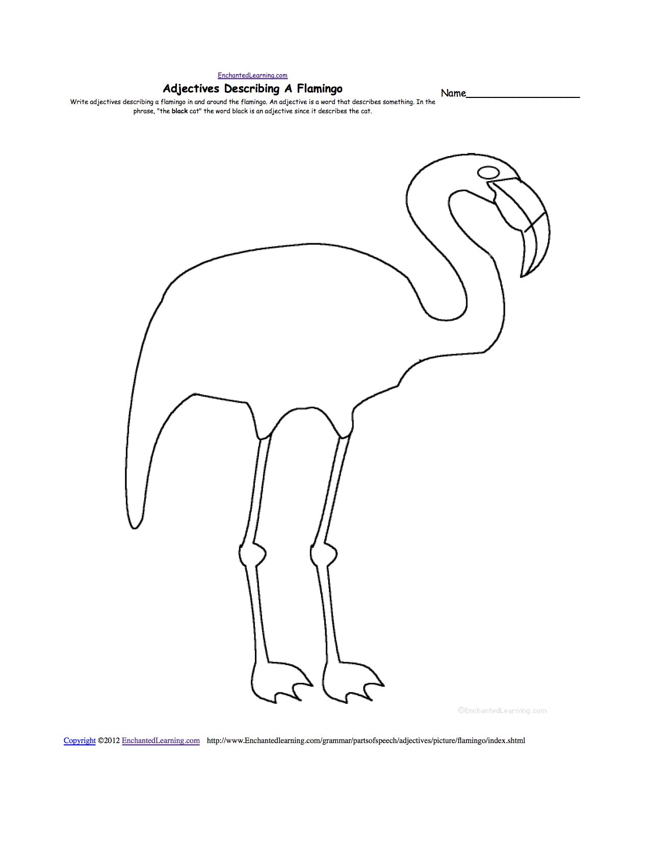 Adjectives Describing A Flamingo ![]() Write adjectives describing a flamingo in and around the flamingo. Or go to a pdf of the worksheet. |