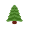Write adjectives describing an evergreen tree in and around the evergreen tree picture.