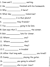 To Be For the following sentences, fill in the correct form of the verb to be: is, are, am. |