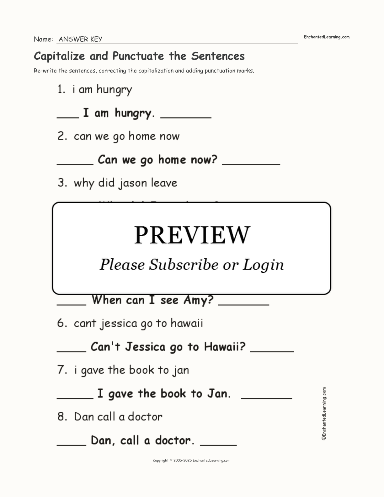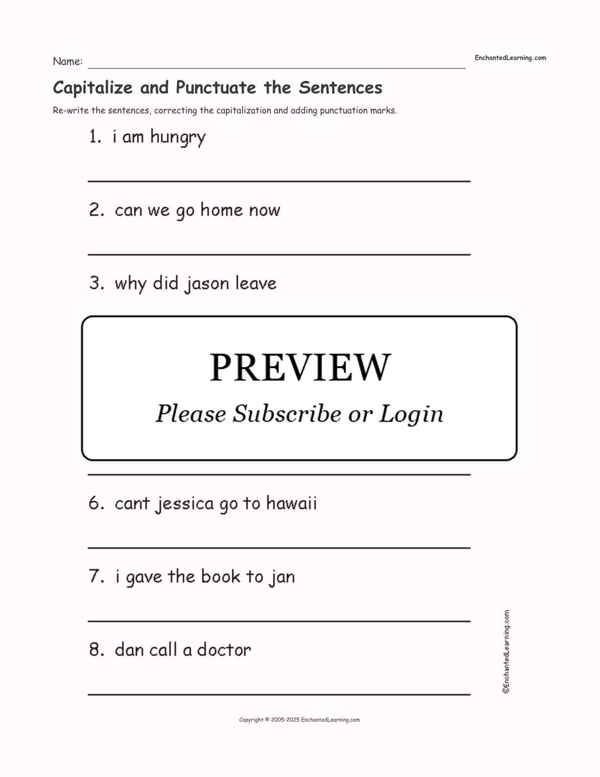 Re-write the sentences, correcting the capitalization and adding punctuation marks.