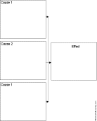 3 Causes --> 1 Effect Diagram Printout An event in which three causes result in a single effect. |
