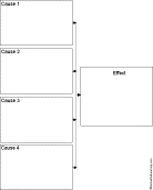 4 Causes --> 1 Effect Diagram Printout An event in which four causes result in a single effect. |