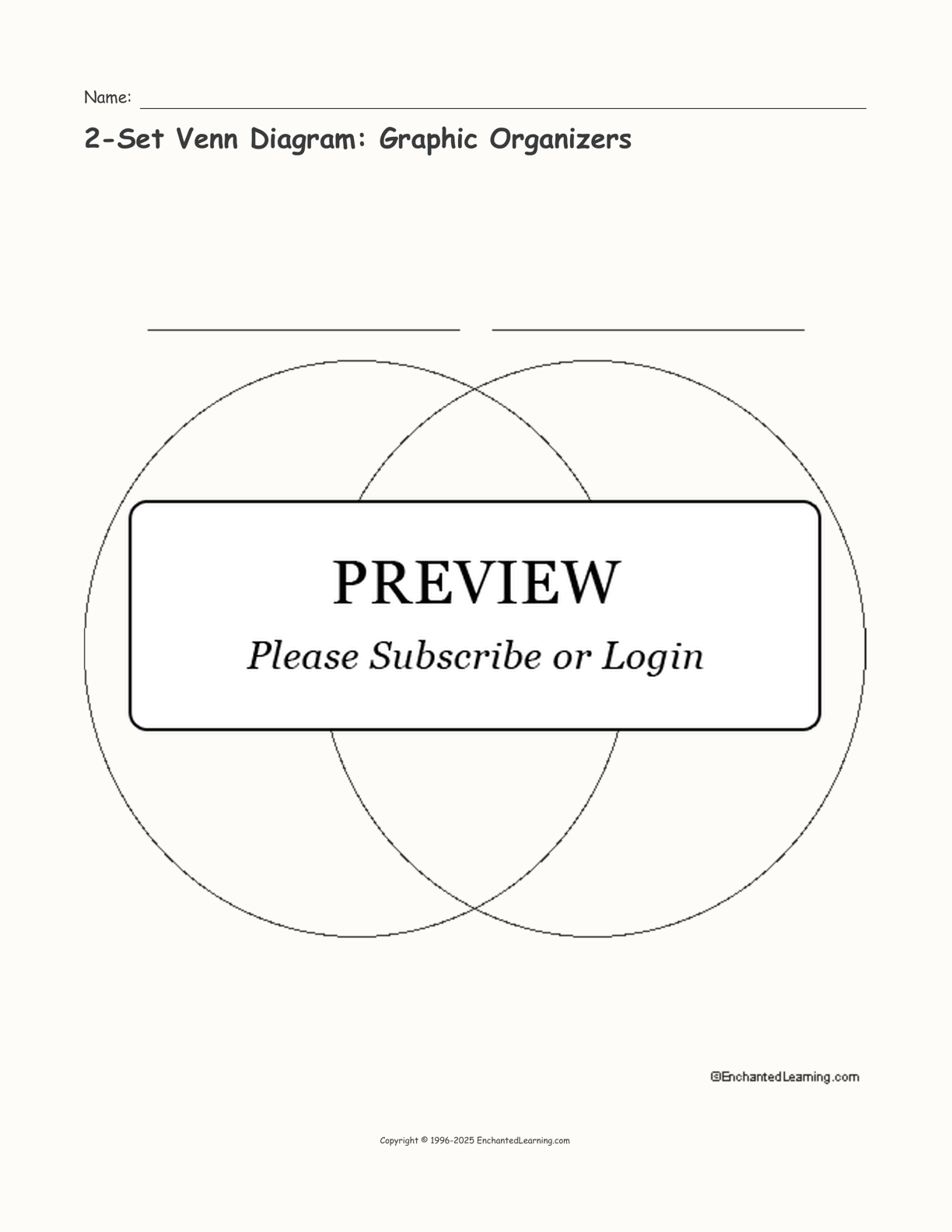 Printable 2-Set Venn Diagram: 2 circles positioned horizontally.