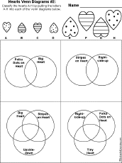 Hearts Venn Diagram Printout #1 On this printout, the student classifies hearts by placing them in Venn diagrams. Or go to the answers. |