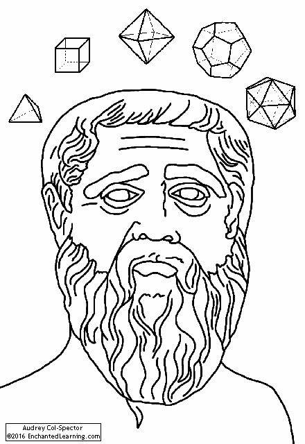 Color this picture of the Greek philosopher Plato (who is thinking about what we now call the Platonic solids!).