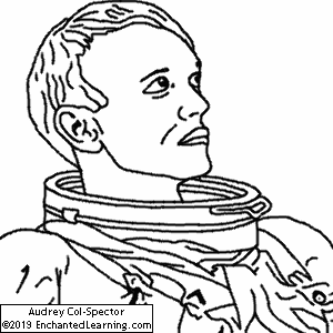 A coloring page of astronaut Michael Collins, pilot of the Apollo 11 Command Module. Collins orbited the Moon while Neil Armstrong and Buzz Aldrin landed on the surface.
