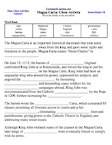 Magna Carta Simple Printout Read a very simple printout on Magna Carta, with a picture of the last version of the document, from 1225. Or go to a pdf of the page (subscribers only). |