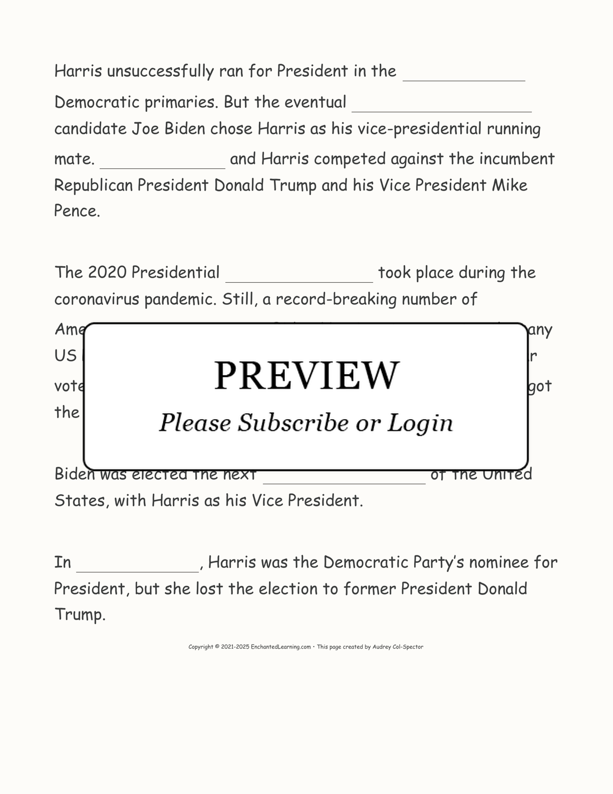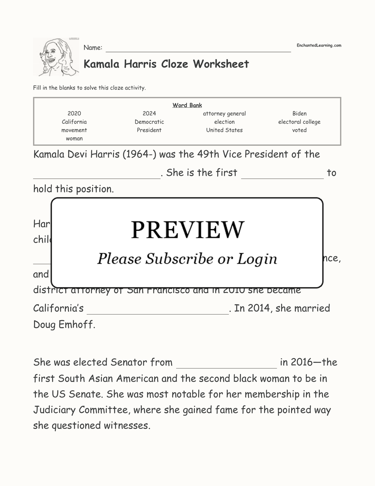 Kamala Harris Cloze Worksheet