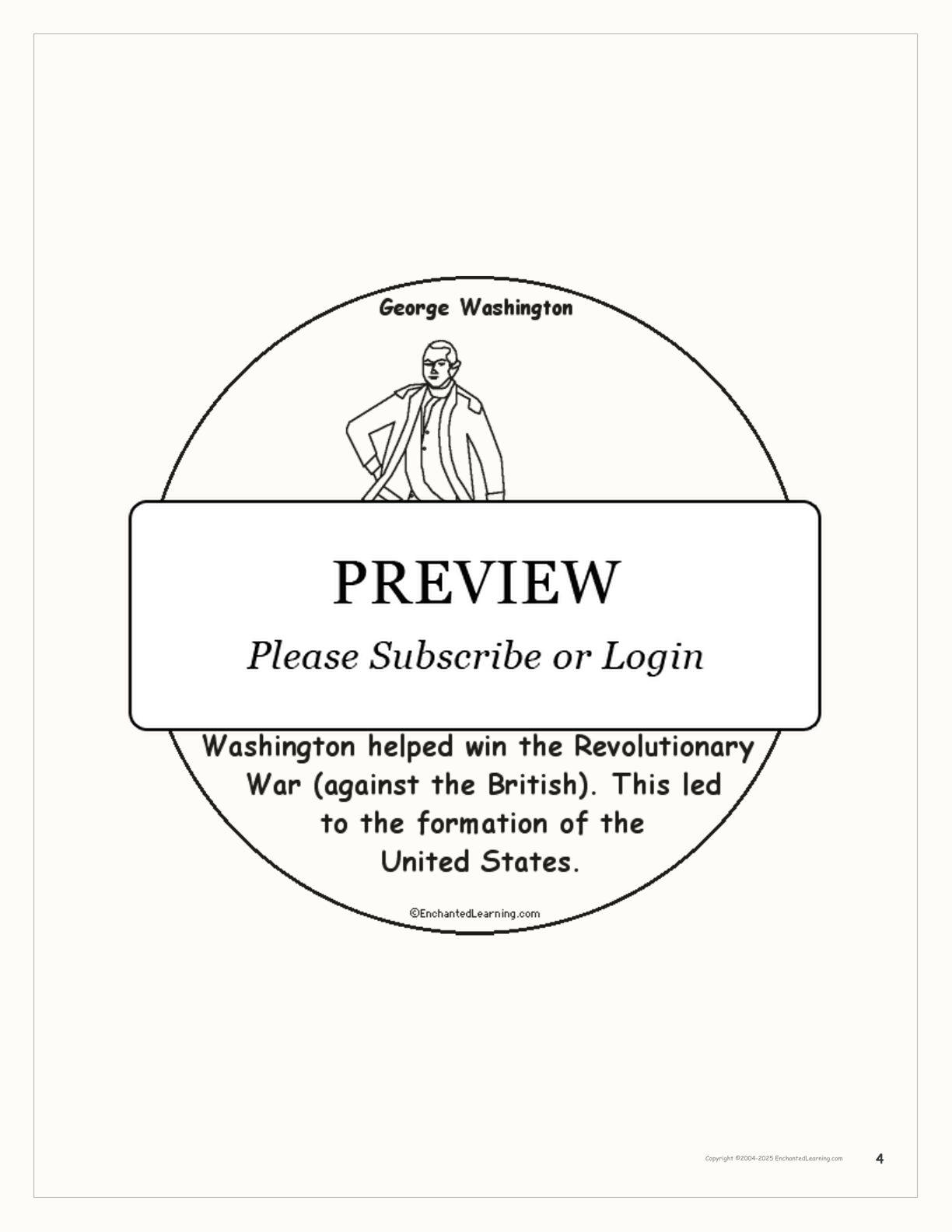 This is a printable book for early readers about George Washington.