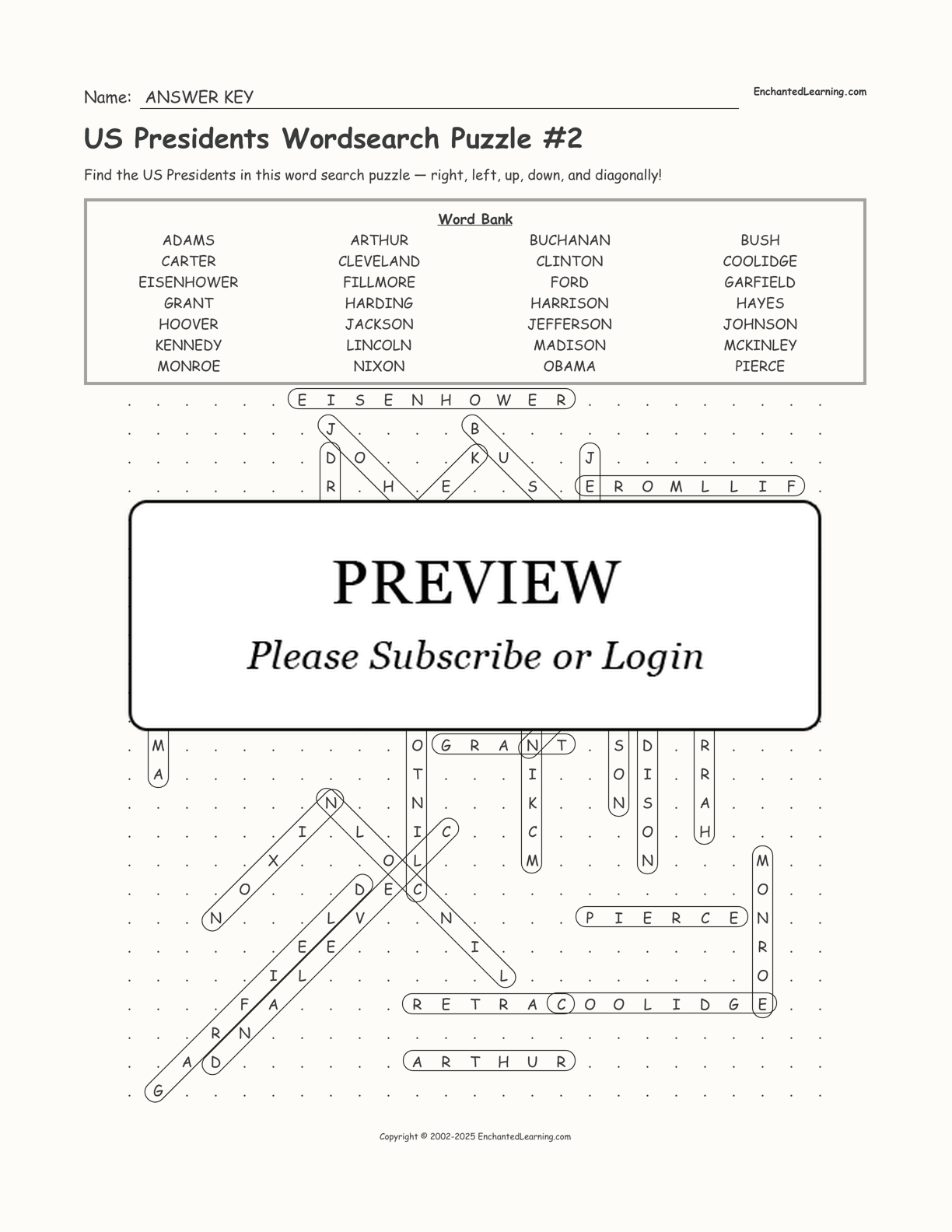 Find the US Presidents in this word search puzzle — right, left, up, down, and diagonally!