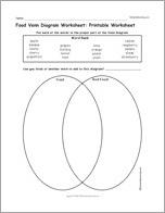 Food and Plant Venn Diagram Worksheet: Put each of the word bank words in the proper place in the Venn diagram with the headings: food, plant.