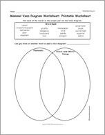 Mammal Venn Diagram Worksheet: Put each of the word bank words in the proper place in the Venn diagram with the headings: mammals, black-and-white colored things.