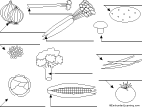 Vegetables Label the peas, potato, celery, carrot, pumpkin, onion, cucumber, corn, broccoli, mushroom, and tomato. Answers |