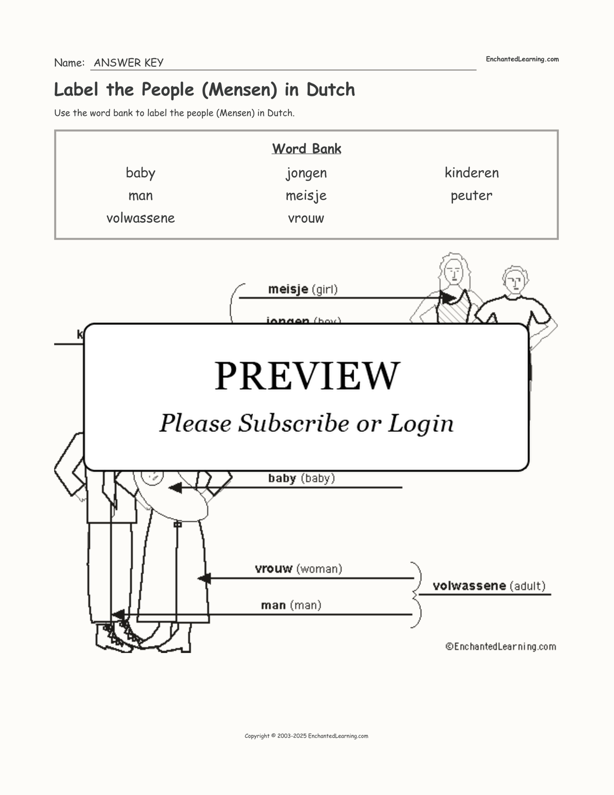 In this printable worksheet, use the word bank to label the people (Mensen) in Dutch.