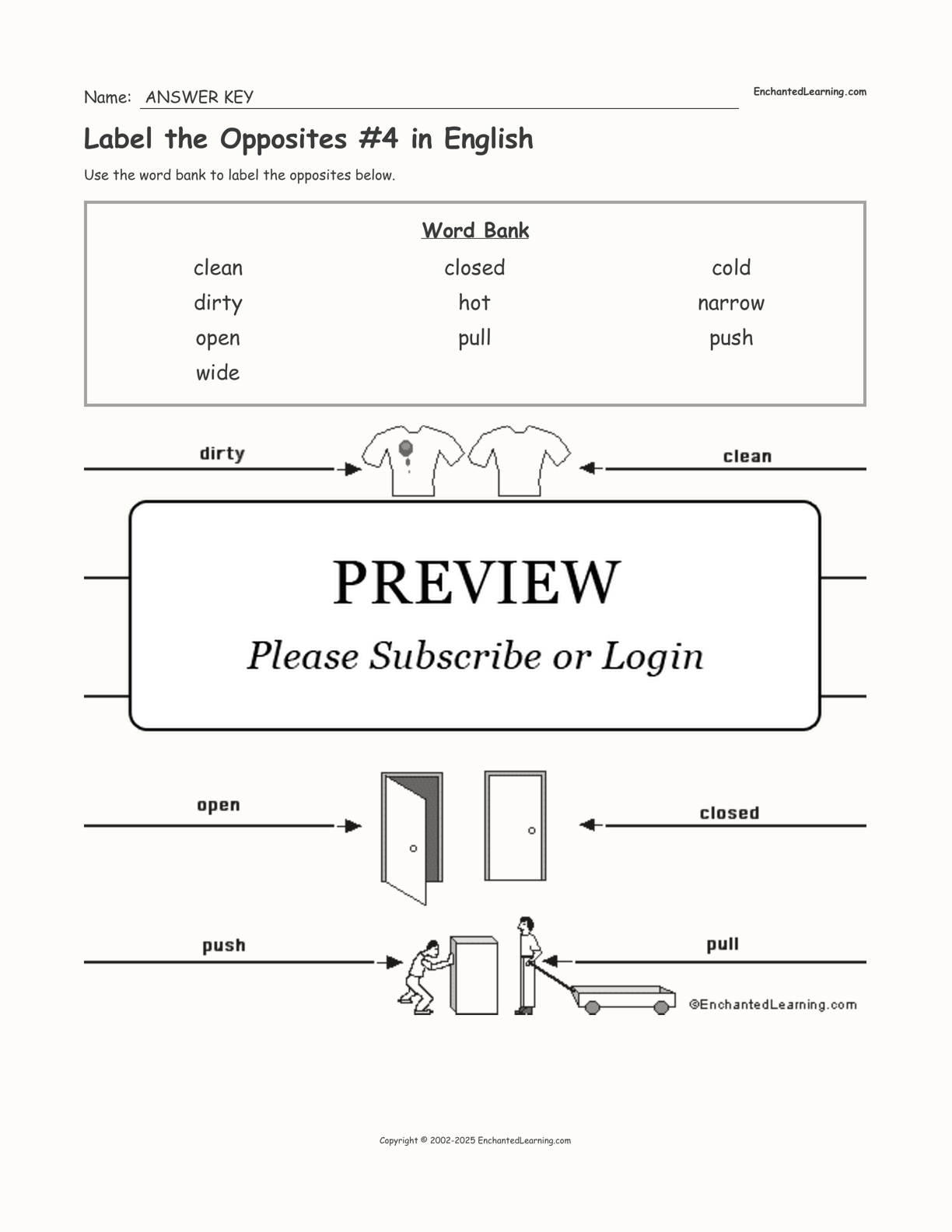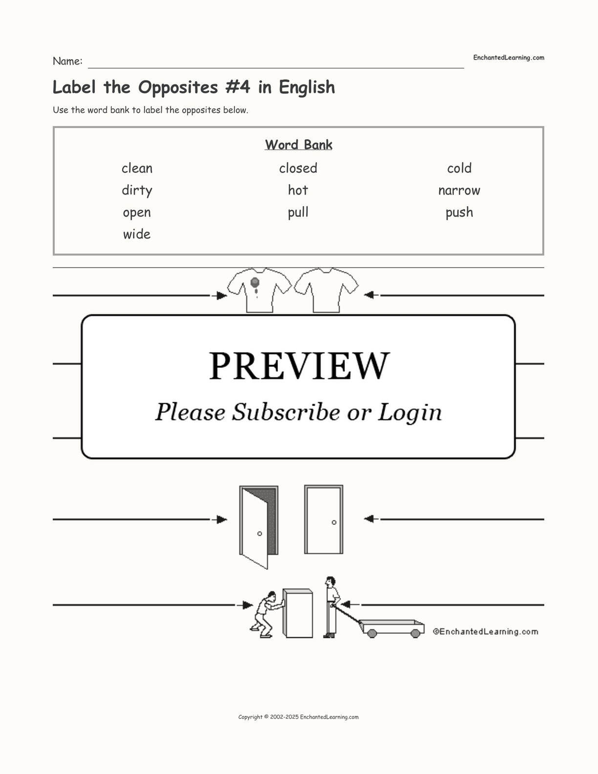 In this printable worksheet, label the opposites in English using the word bank. (#2)