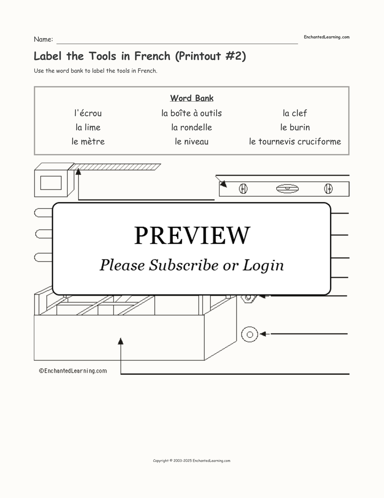 In this printable worksheet, use the word bank to label the tools in French (printout #2).