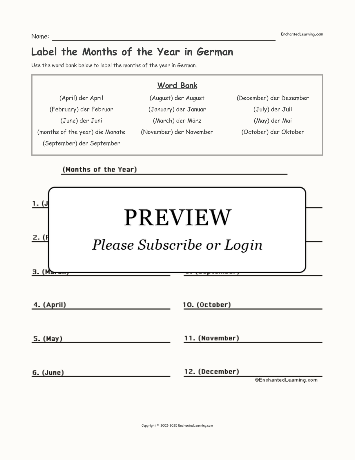 In this printable worksheet, use the word bank to label the months of the year in German.