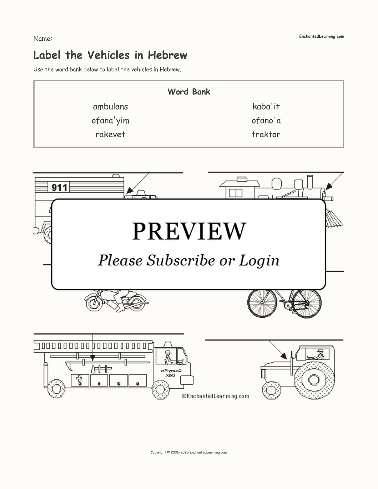 In this printable worksheet, use the word bank to label the vehicles (die träger) in Hebrew.
