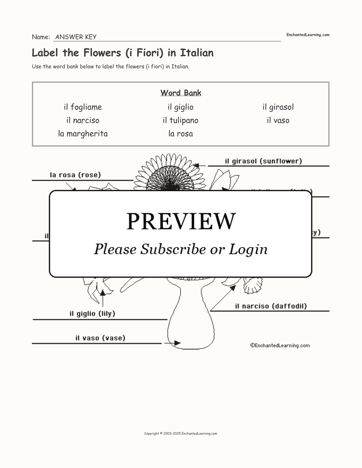 In this printable worksheet, use the word bank to label the flowers (i fiori) in Italian.