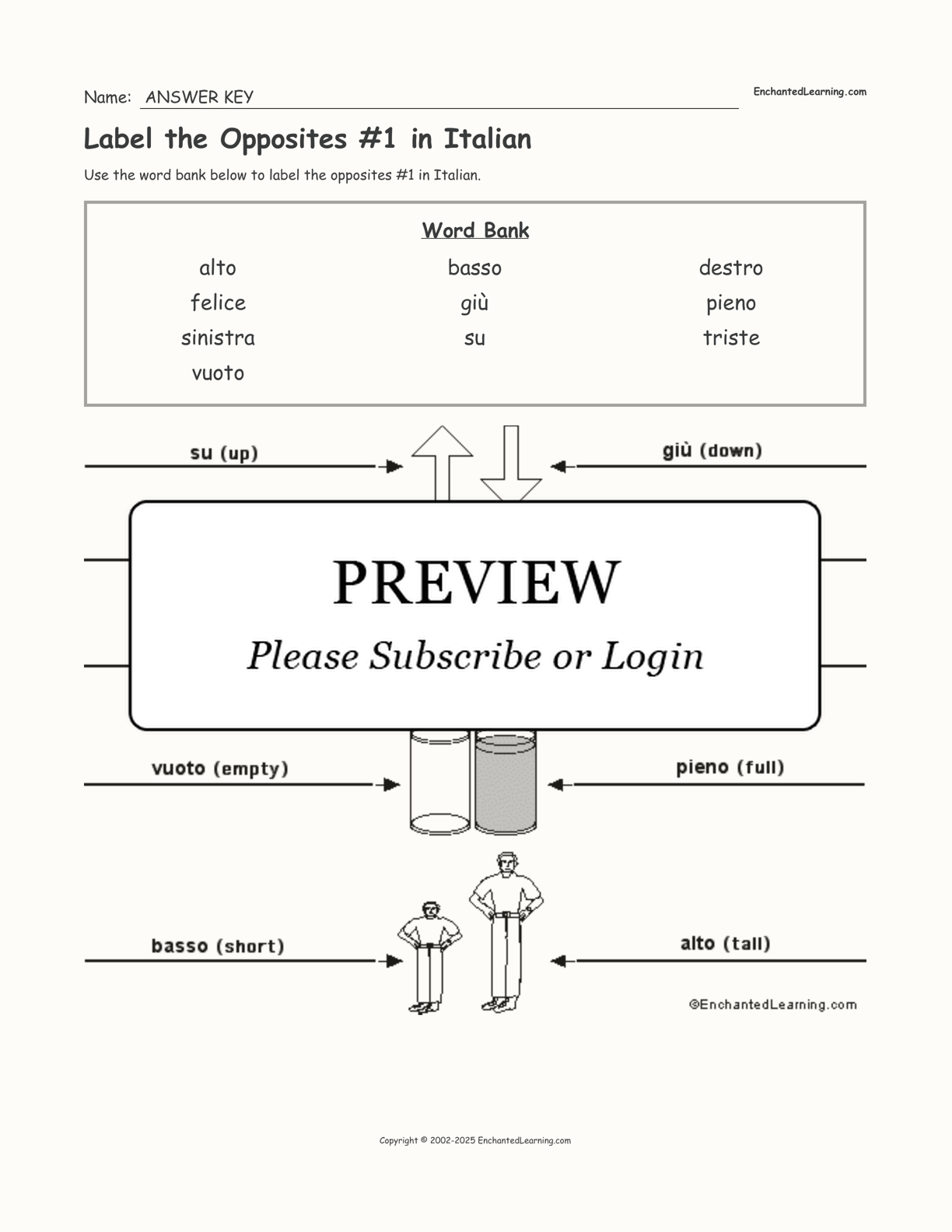 In this printable worksheet, use the word bank to label the opposites #1 in Italian.