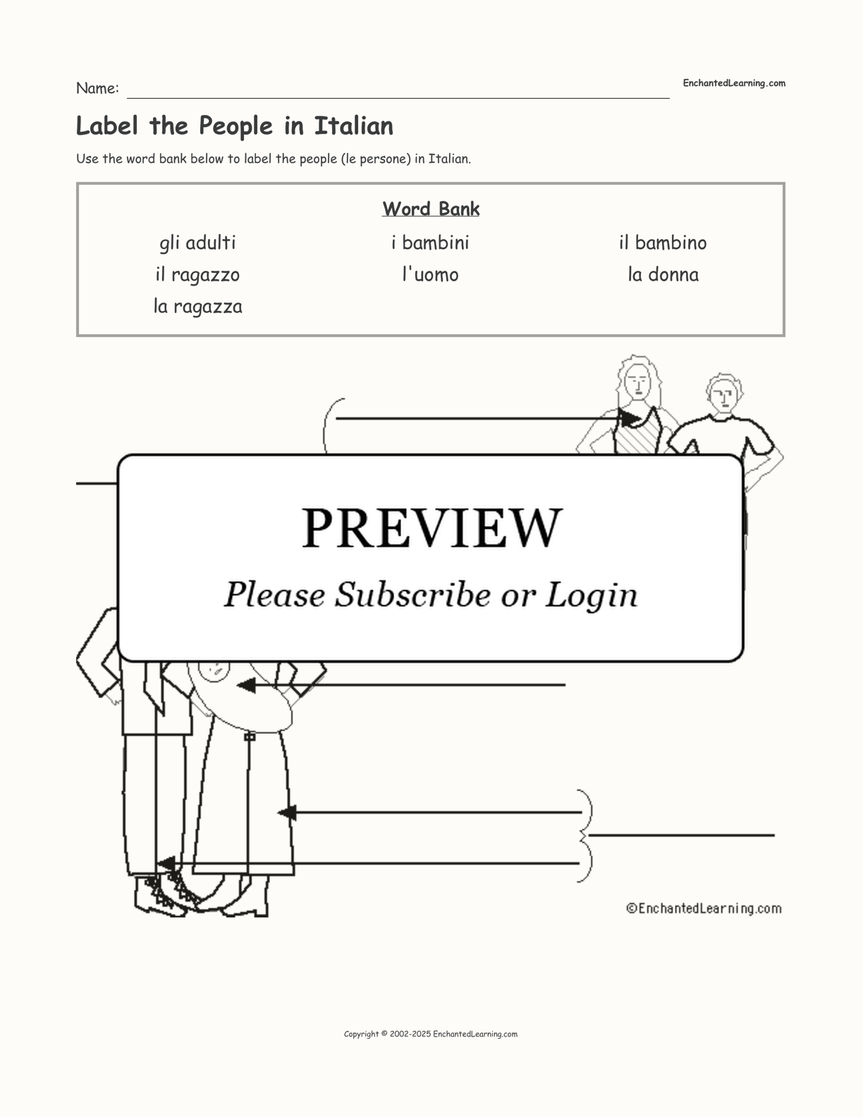 In this printable worksheet, use the word bank to label the people (le persone) in Italian.