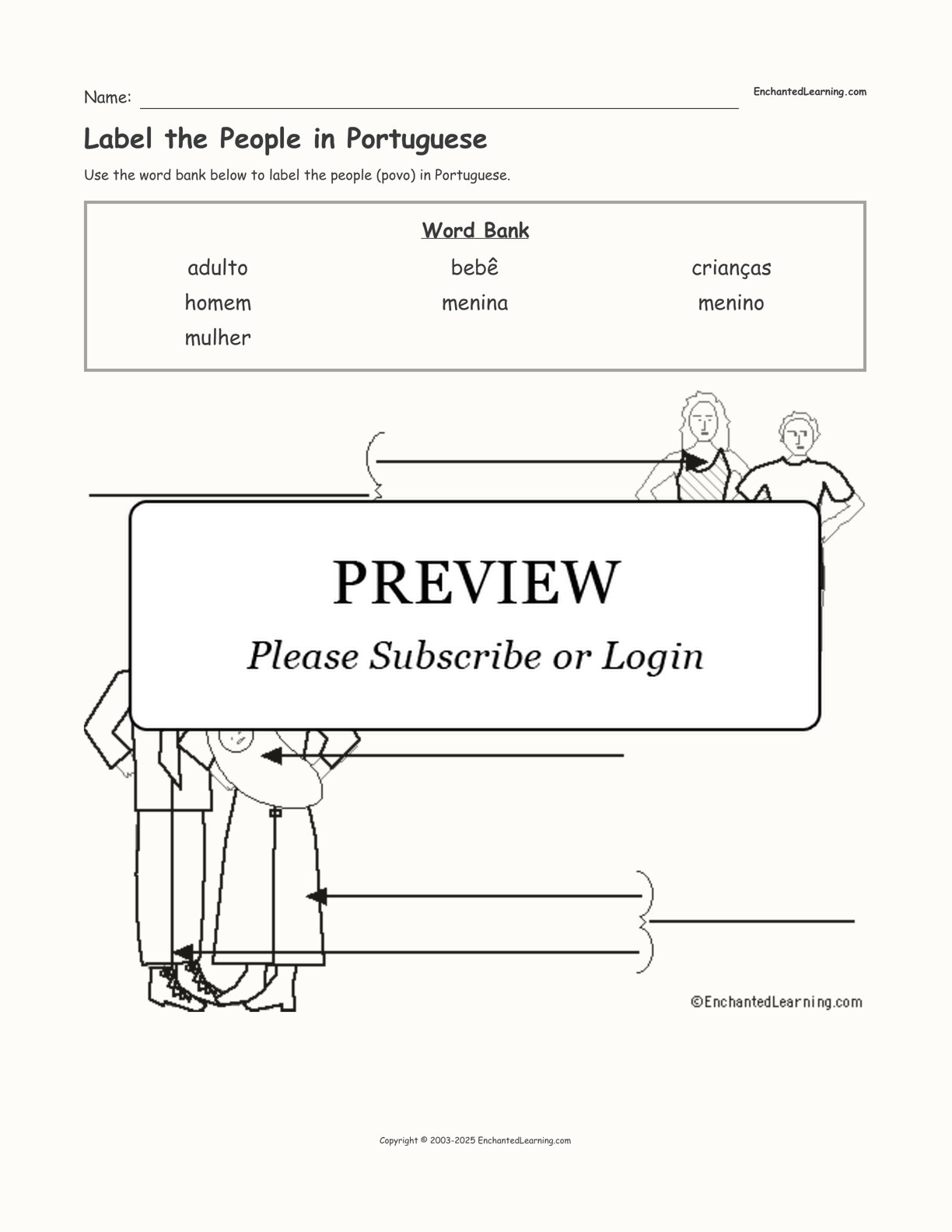In this printable worksheet, use the word bank to label the people (povo) in Portuguese.