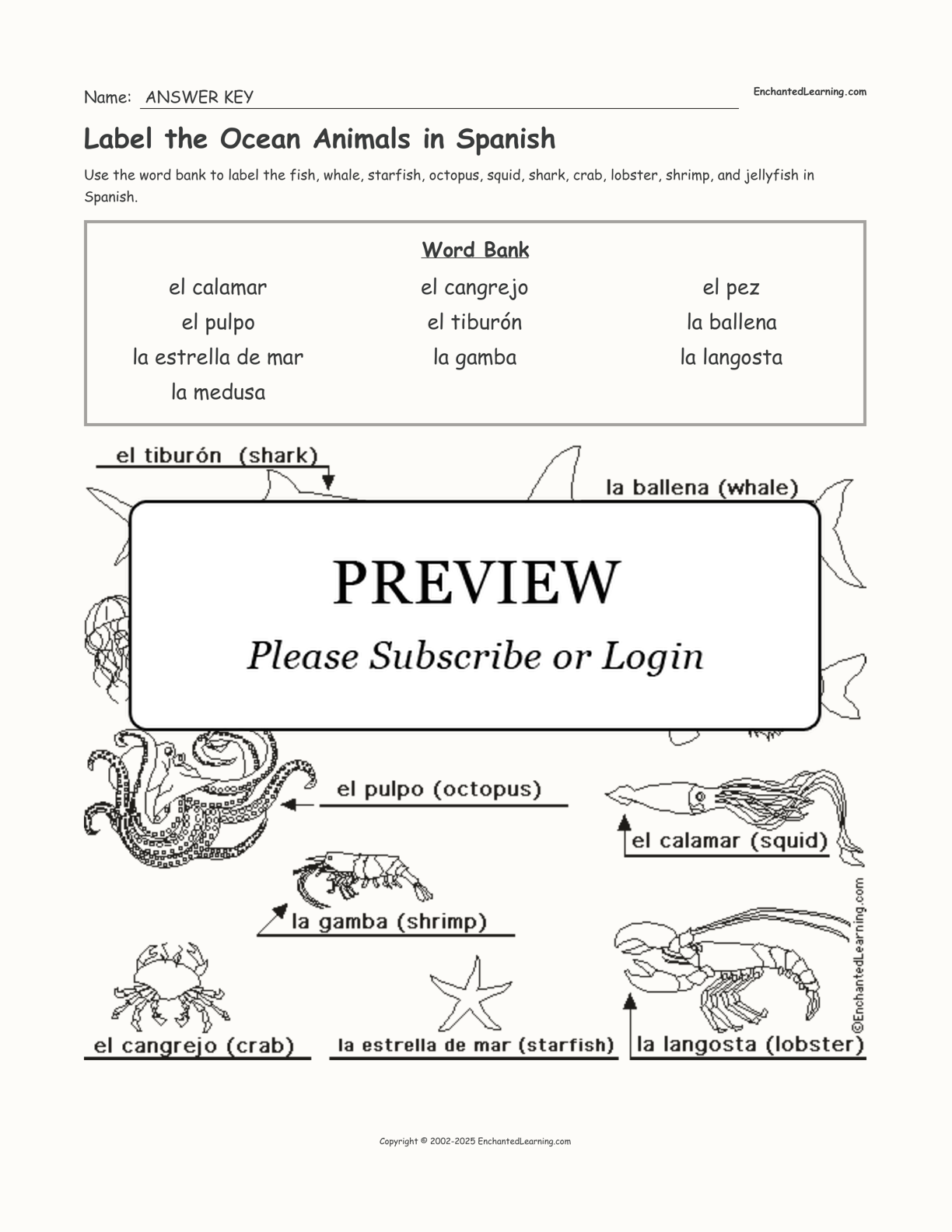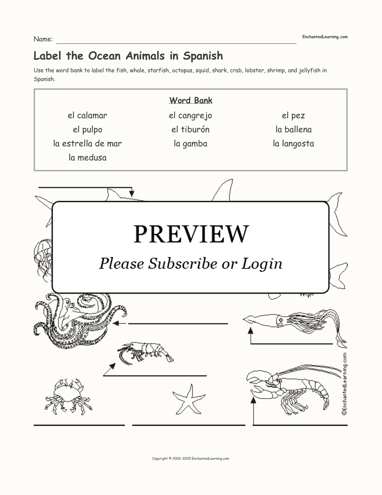 In this printable worksheet, use the word bank to label the ocean animals in Spanish.