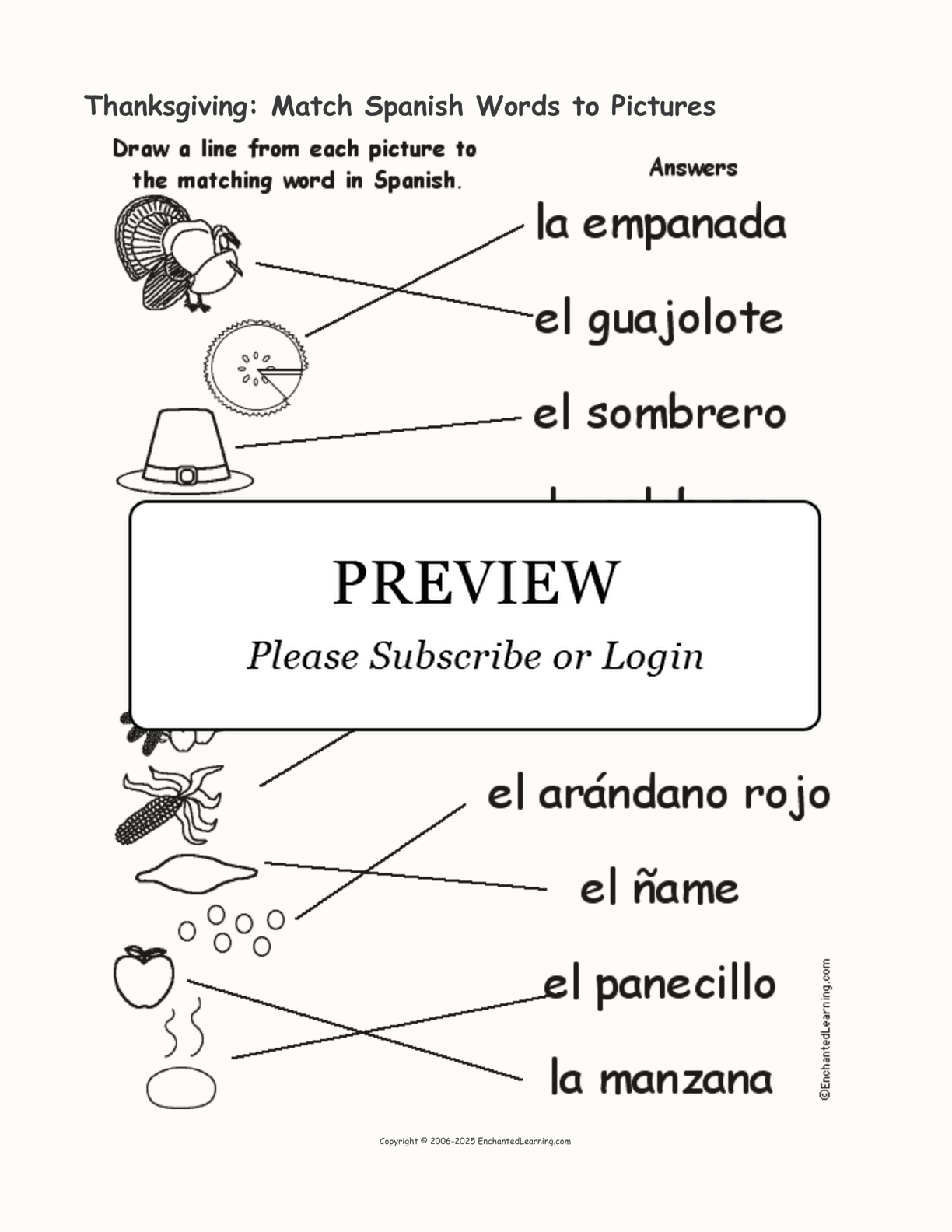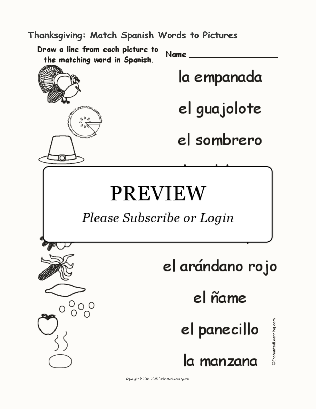 In this printable Thanksgiving-themed worksheet, match the Spanish words to the pictures.