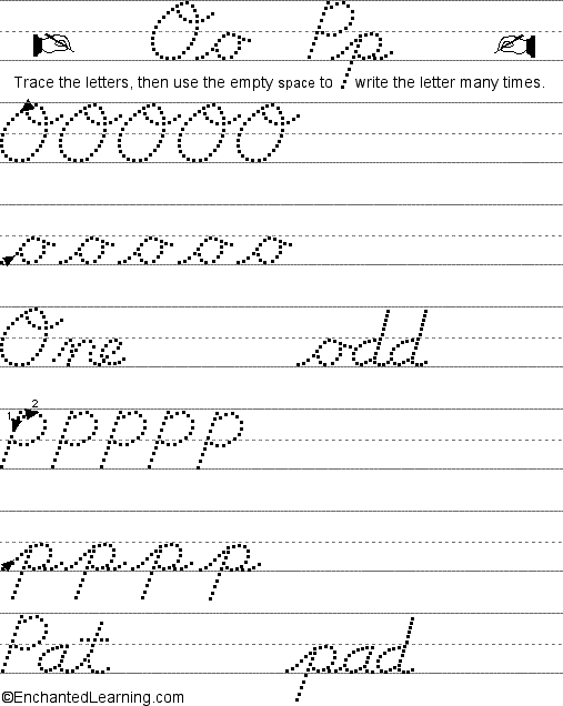 This is a printable worksheet of ‘Writing Cursive Letters, O-P’, perfect for practicing cursive.