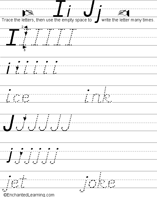 Practice writing letters I-J (upper and lower case) with this tracing printable worksheet.