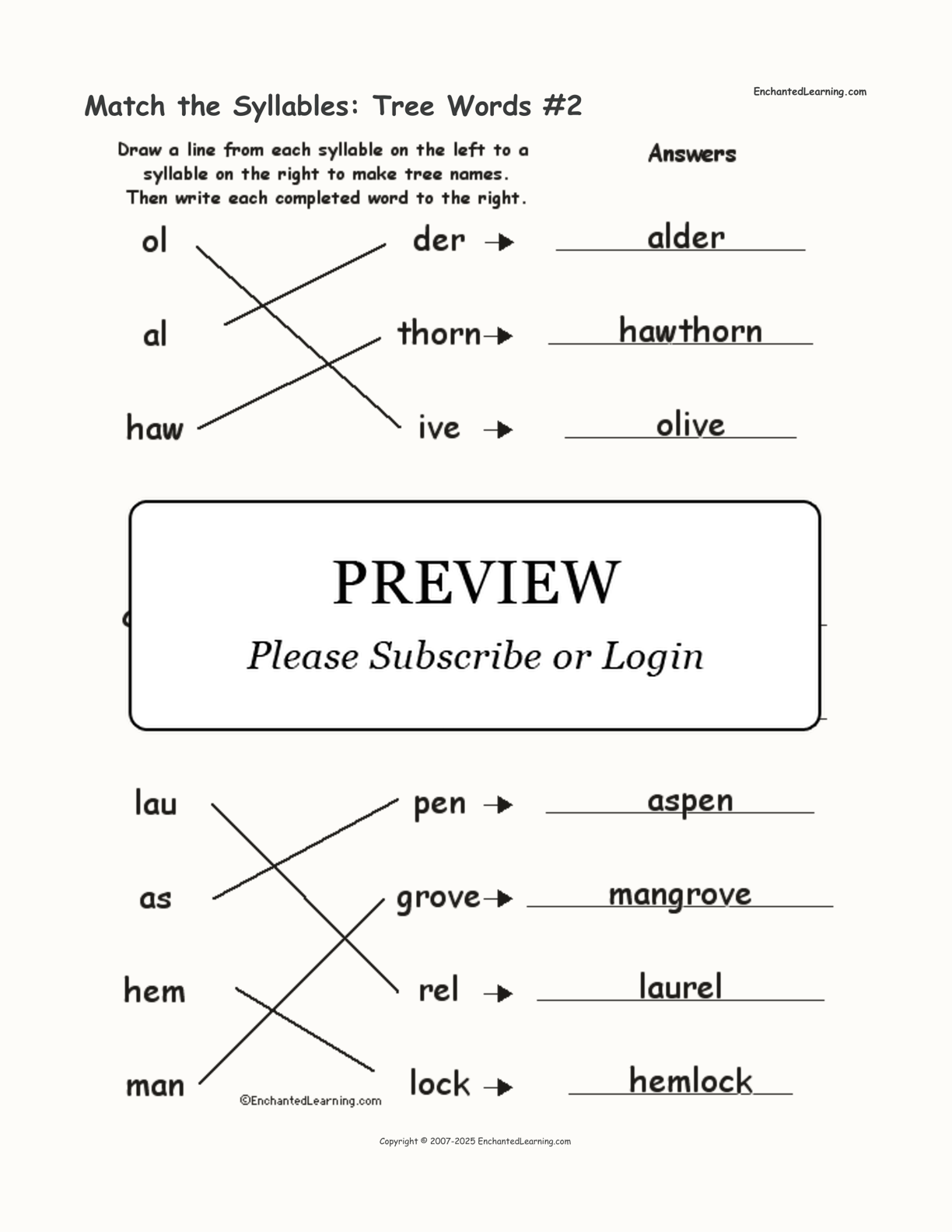 Match the Syllables: Tree Words #2 interactive worksheet page 1Match the Syllables: Tree Words #2 interactive worksheet page 2