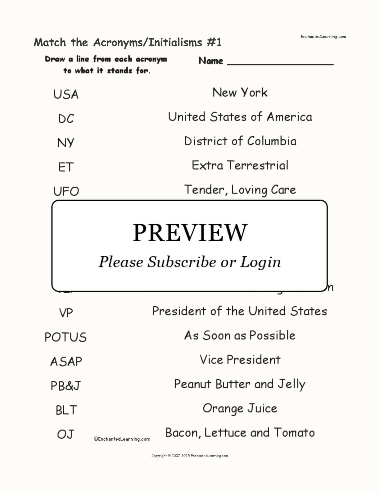 In this printable worksheet, match each acronym or initialism to what it stands for.
