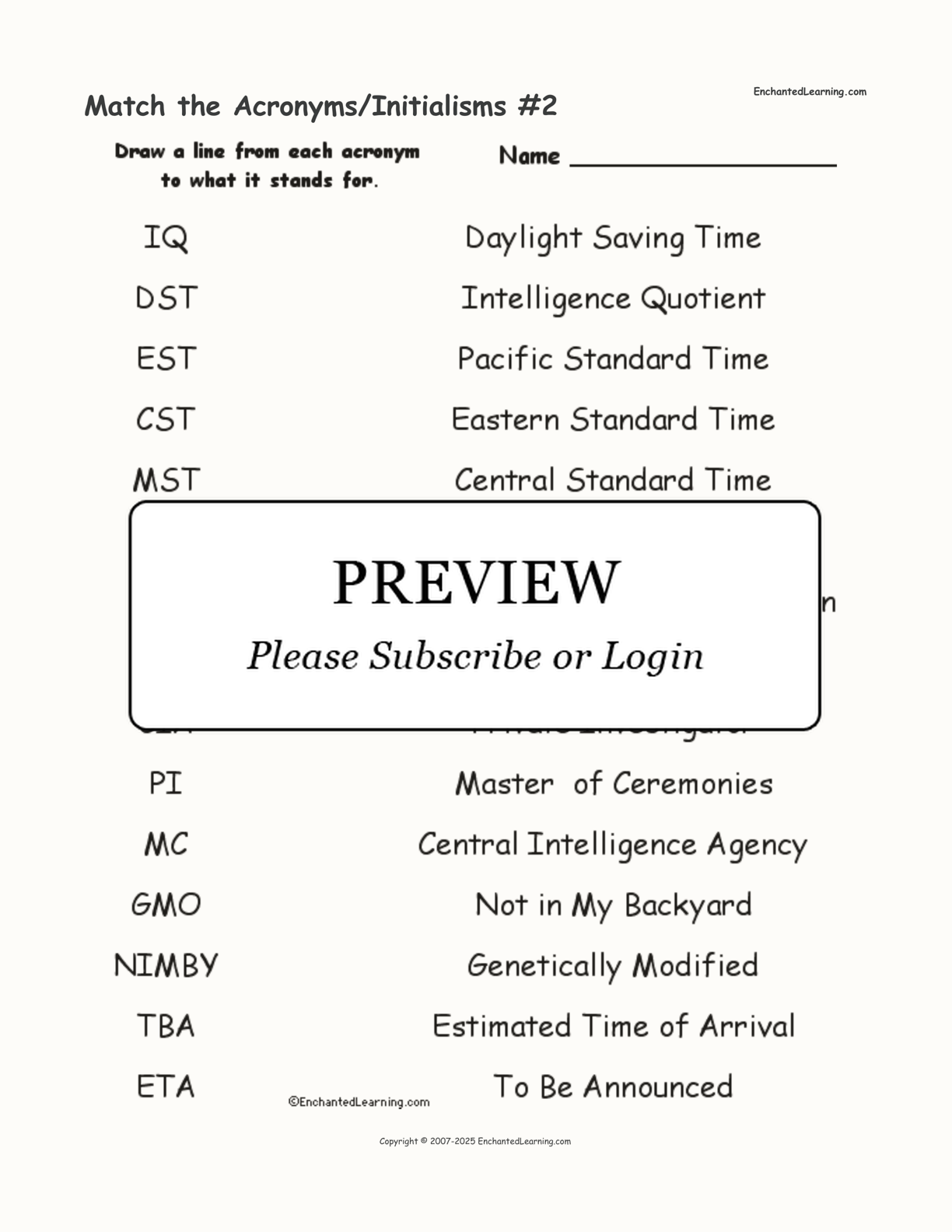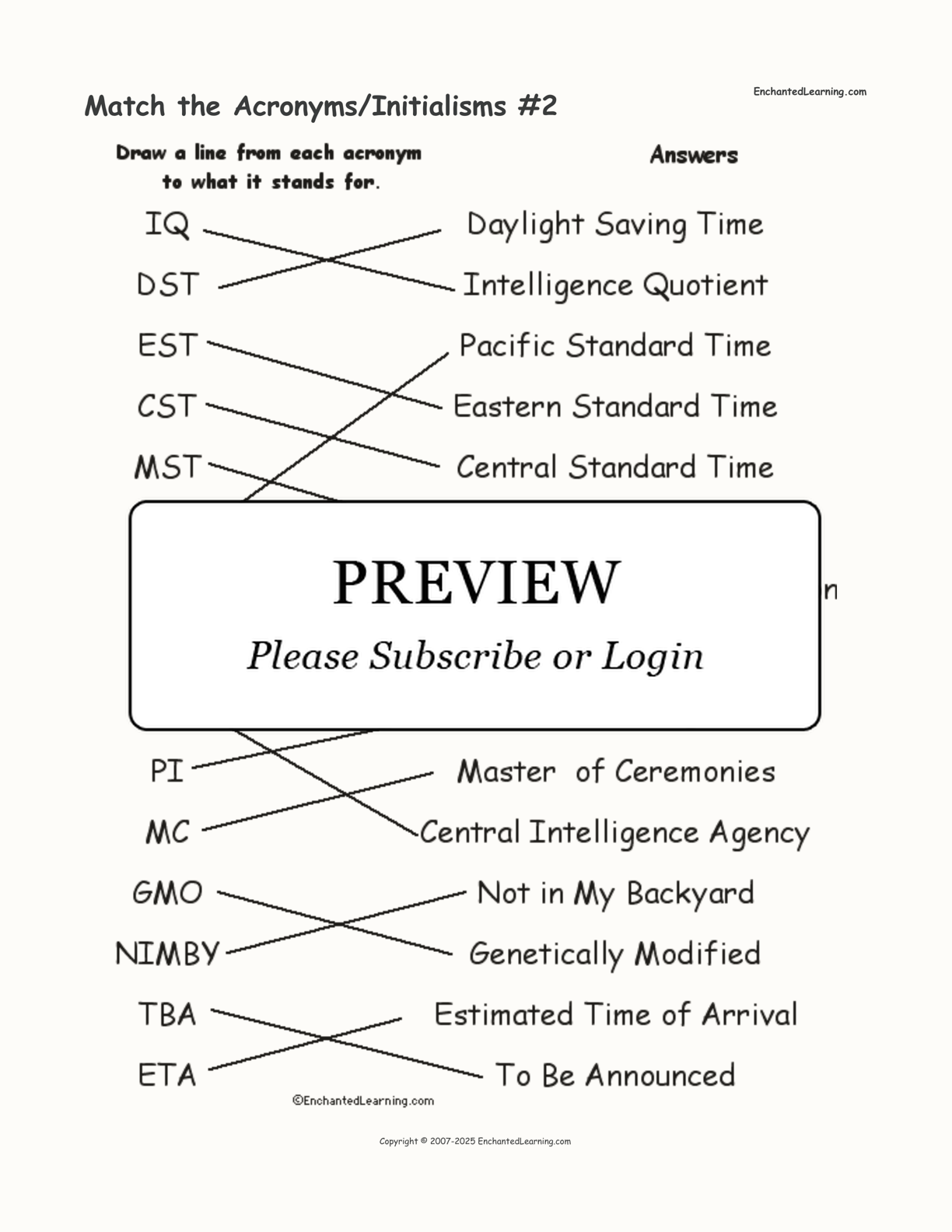 In this printable worksheet, match each acronym or initialism to what it stands for.